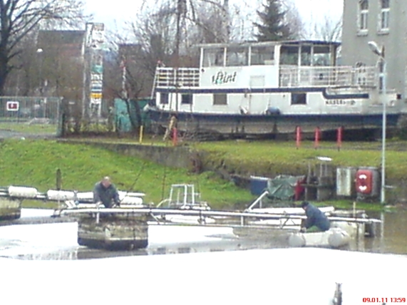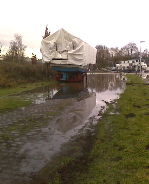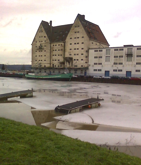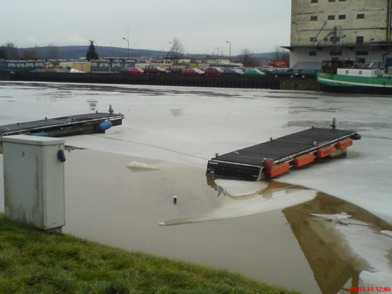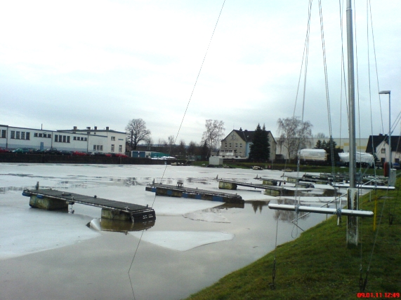 Anfang Januar 2011 gab es durch eine rasche Schneeschmelze und starke Regenfälle Hochwasser im Kasseler Hafen. Hier einige Impressionen vom 9. Januar. An diesem Tag fand die Neujahrsbegrüßung des YCK statt. Durch die Bewegung der massiven Eisplatte im Hafenbecken gerieten einige Stege in Gefahr, da durch den Druck Schwimmer verschoben wurden, so dass noch am Sonntag der Kran kommen musste. In einer gemeinsamen Aktion der Mitglieder wurden die Stege gesichert.